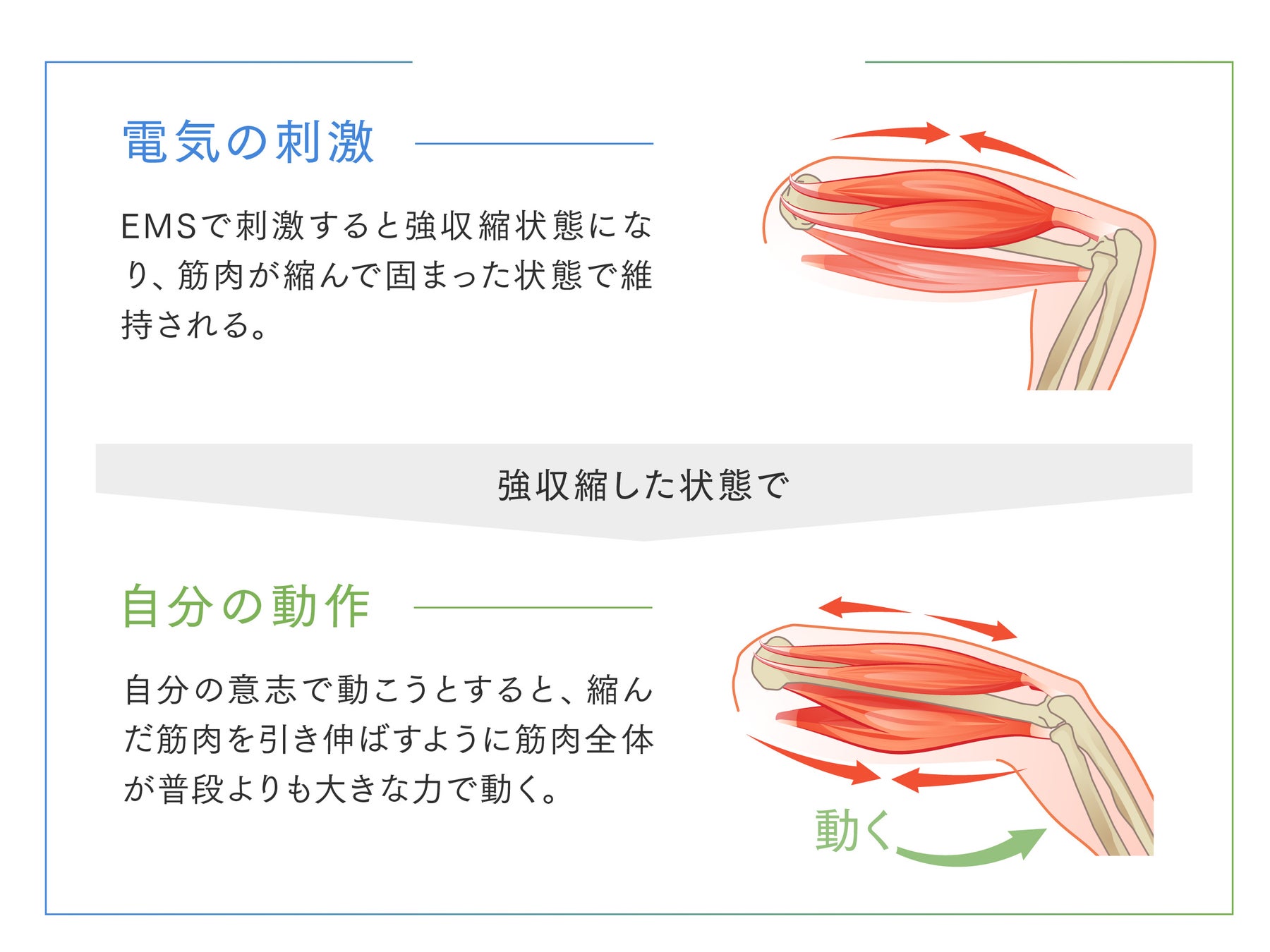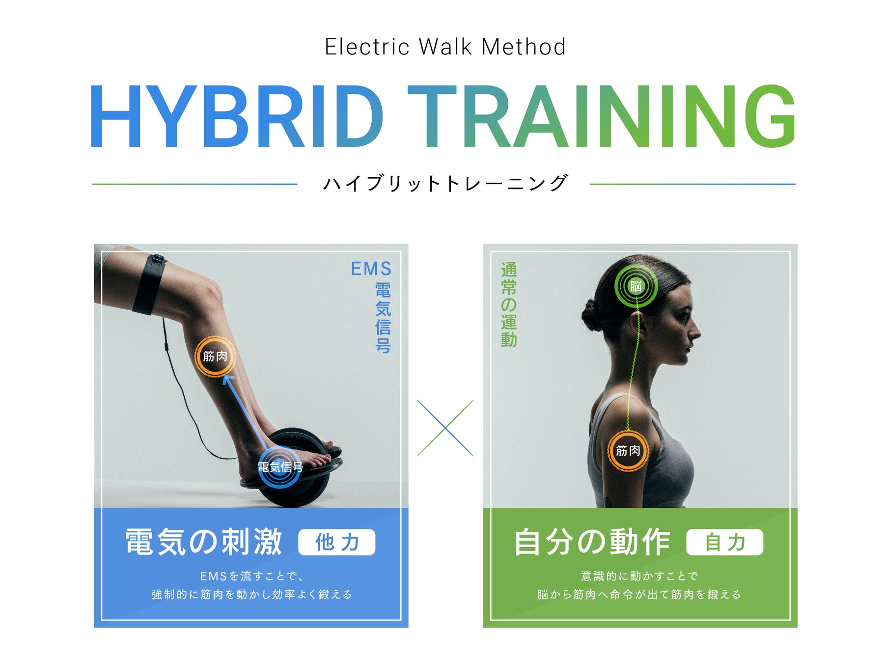 ハイブリッドトレーニングとは、EMSで筋肉を刺激しながら自分の意志で動くトレーニング方法です。