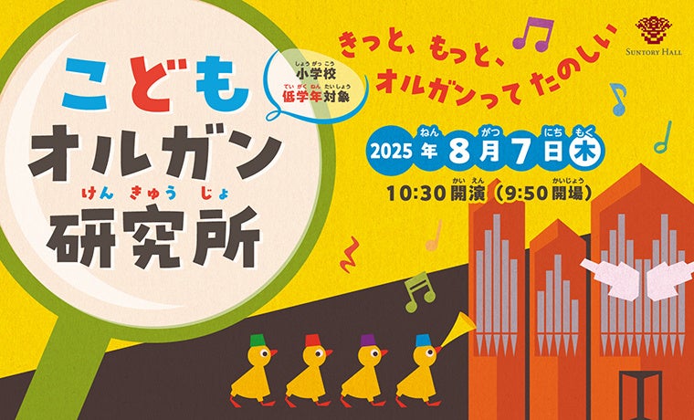 サントリーホールでは、2025年8月7日(木)開催の小学生向けオルガン公演「こどもオルガン研究所」の併催企画として、オルガンについてさらに深く学びたい小学校1~3年生を対象に「オルガン特別ツアー」を開催します。
