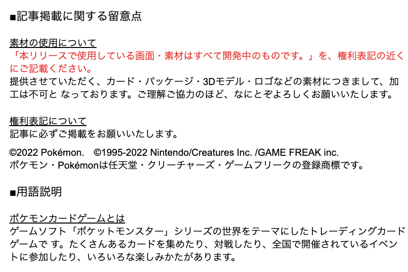 | 報道関係各位からの本情報についてのお問い合わせ窓口、および原稿確認の窓口 株式会社ポケモン カード事業統括部 徳山亜希子 e-mail:tokuyama@pokemon.co.jp |