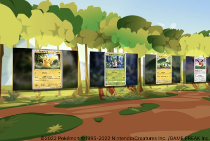 それぞれのエリアには、さまざまなポケモンカードが展示されています。鑑賞したいカードを選択すると、カードイラストがクローズアップされ、大きな画面でイラスト鑑賞をお楽しみいただけます。