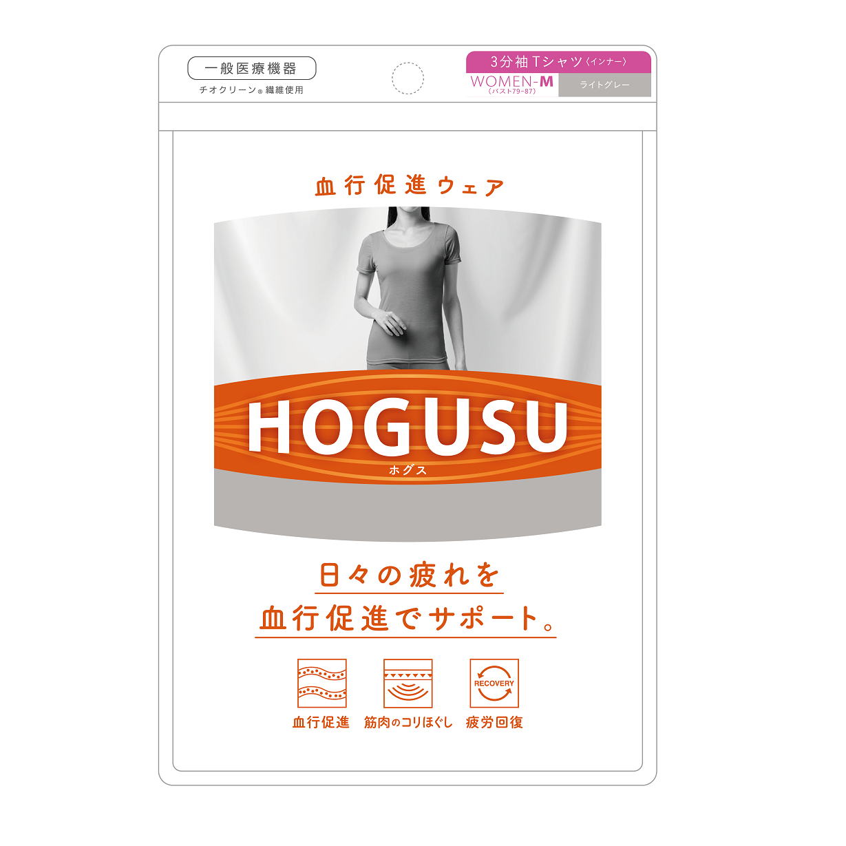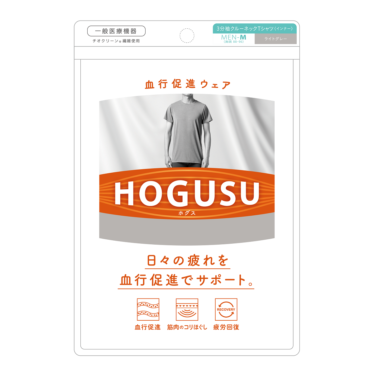 「HOGUSU」は着るだけで血行を促し筋肉のコリをほぐすインナーウェアです。天然鉱石を練り込んだチオクリーン®繊維※が温熱効果をもたらし着用部位の血行を促進、疲労回復へと導きます。