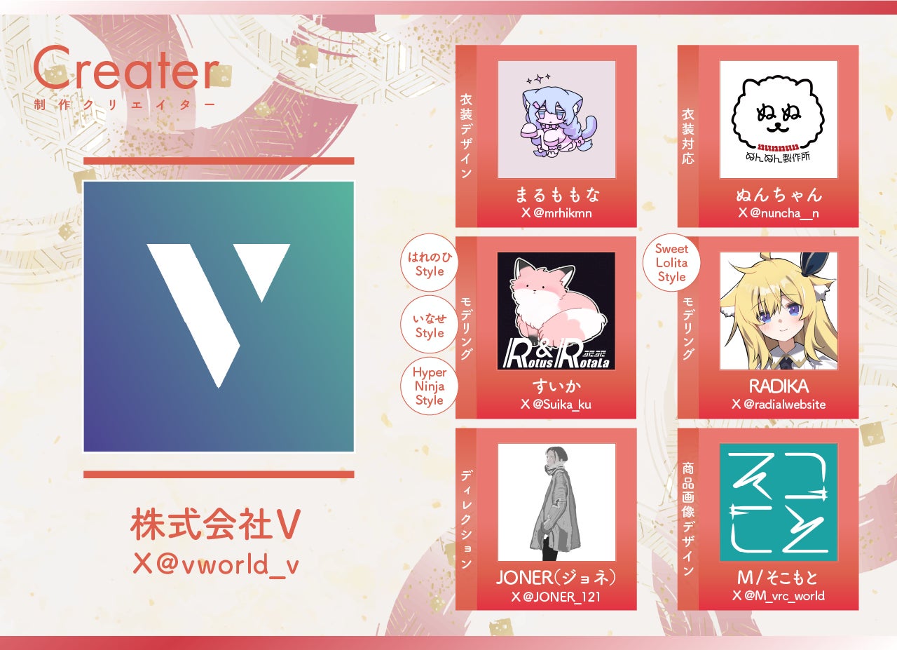 Vは、2023年10月に百貨店業界初の発売となった大丸松坂屋百貨店オリジナル3Dアバターの制作を、プロジェクト発足当初より伴走してまいりました。現在販売している12体全てのオリジナル3Dアバター向けの新作衣装を順次制作。また大丸松坂屋百貨店オリジナルワールド「Future Exhibition Tower - Daimaru Matsuzakaya-」の制作やワールドでのイベント運営など、大丸松坂屋百貨店のメタバースへの取り組み全体を支援しております。