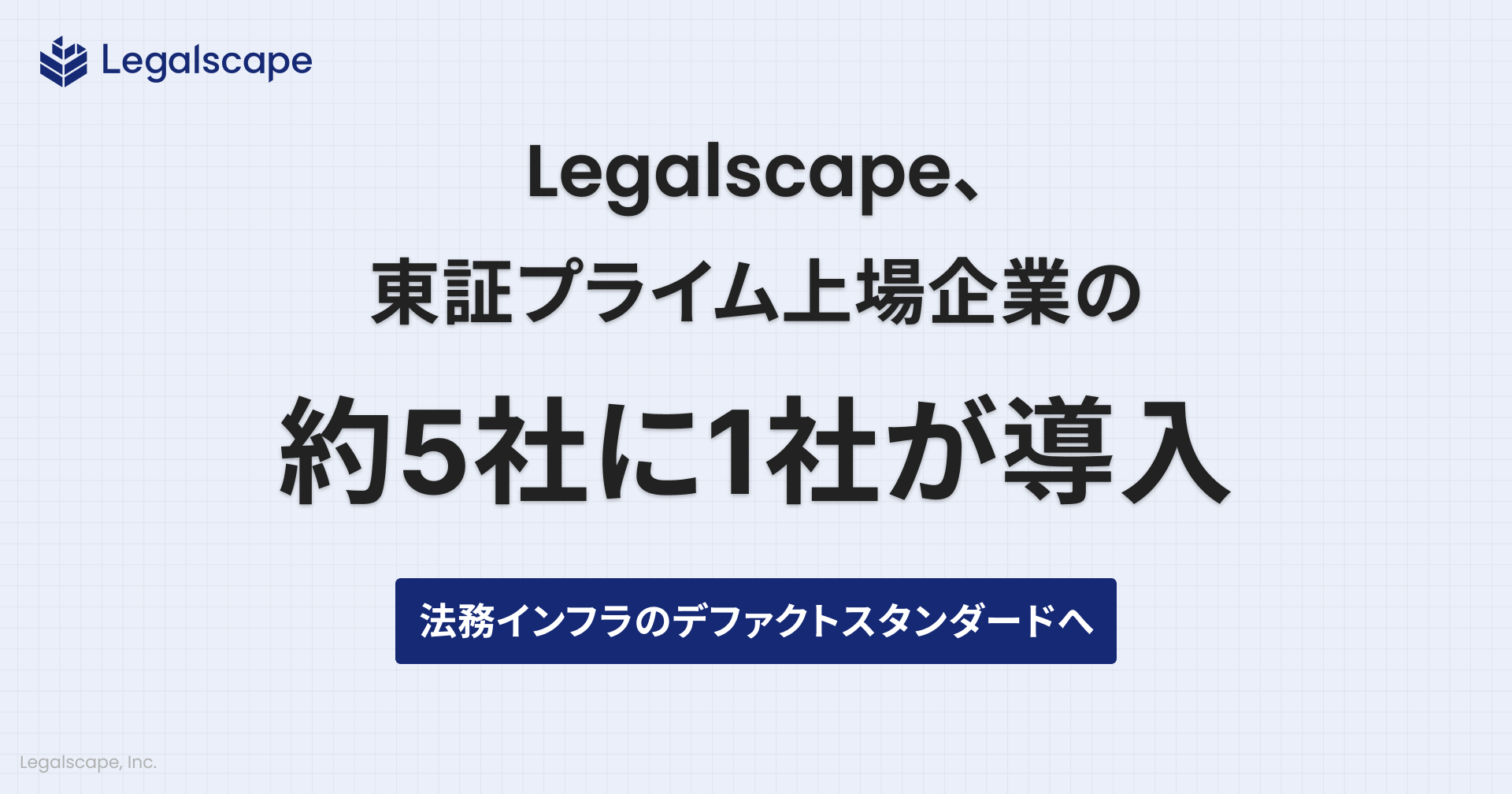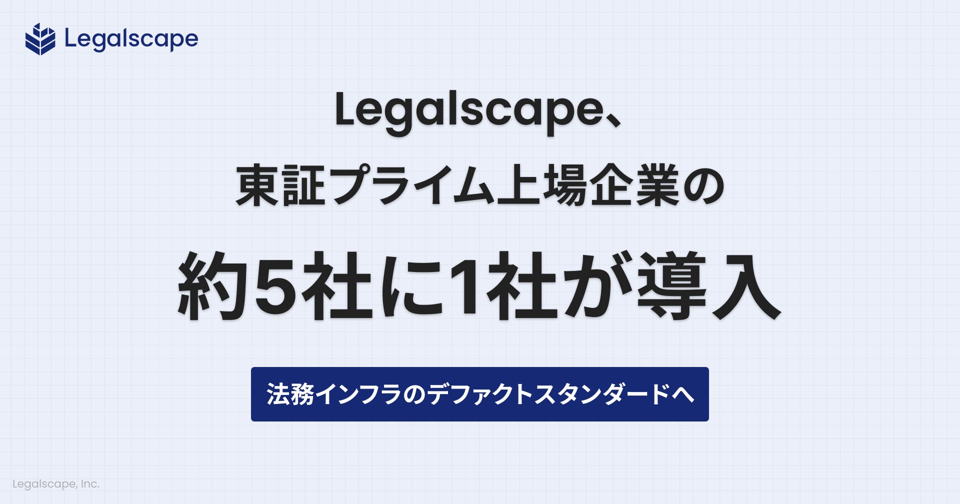 株式会社Legalscape(本社:東京都文京区、代表取締役社長・最高経営責任者:八木田 樹、以下リーガルスケープ)は、提供するリーガルリサーチプラットフォーム「Legalscape(リーガルスケープ)」が東証プライム上場企業の約「5社に1社」が導入していることを発表します。