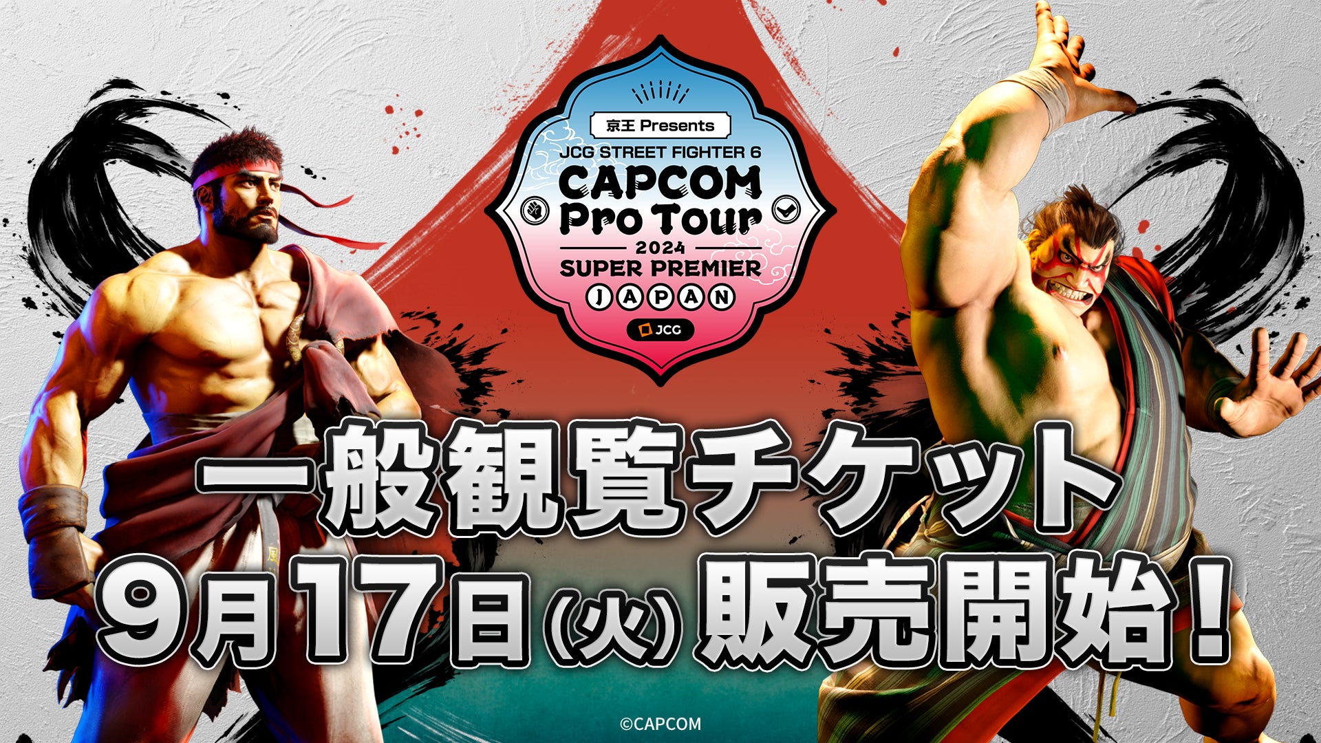 株式会社JCG(本社:東京都江東区 代表取締役CEO:松本順一 以下、「JCG」)は、2024年11月2日(土)および3日(日・祝)にJCG主催で開催される『ストリートファイター6』の公式大会「京王Presents JCG STREET FIGHTER 6 CAPCOM Pro Tour 2024 SUPER PREMIER JAPAN」(以下、「本大会」)の一般観覧チケットの販売を本日9月17日(火)より開始したことをお知らせいたします。