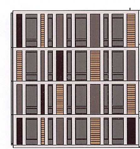 今回、意匠権を取得した本デザインでは、幾何学的な模様を基調としたストライプ構造を1つのパターンとして定義しており、その「パターンの連続」が作り出す視覚効果が独特な美観を喚起し、これまでの同種の不動産建築と比べて、本デザインに「新規性」が公に認められた結果だと考えています。