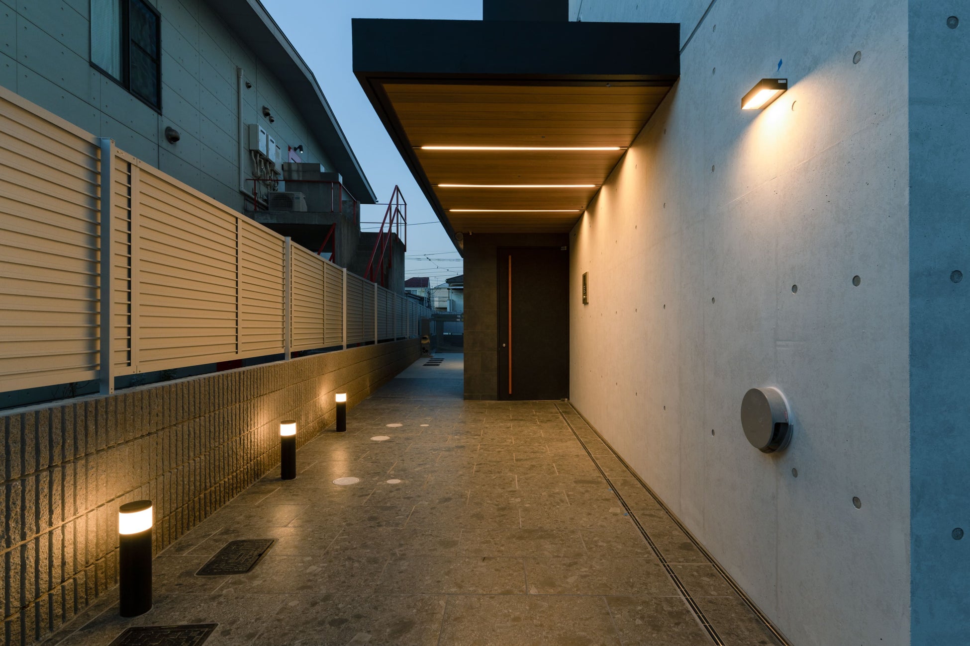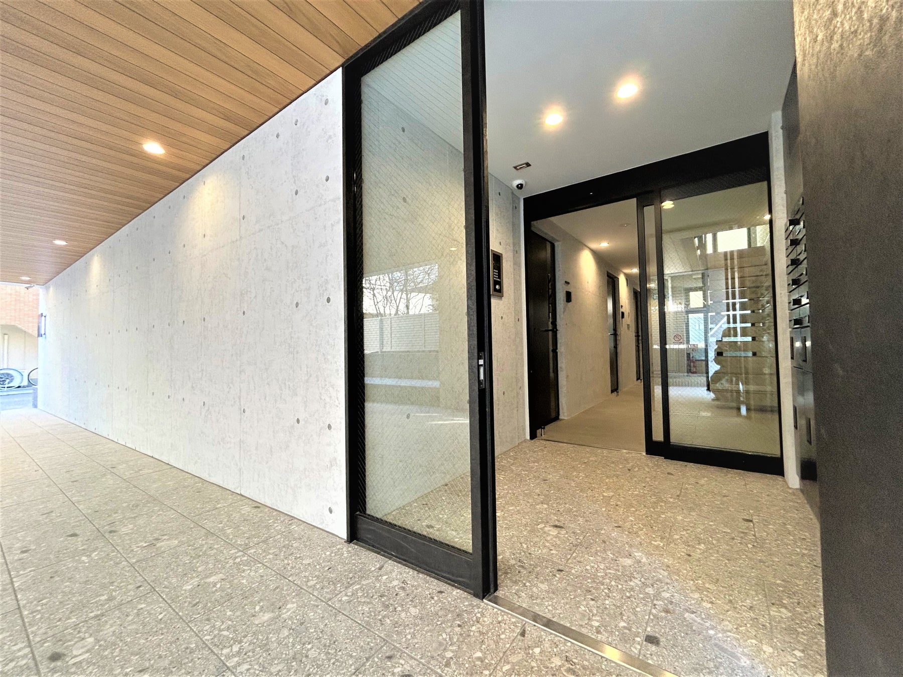 空間の広さと透明感を感じさせるエントランスアプローチ