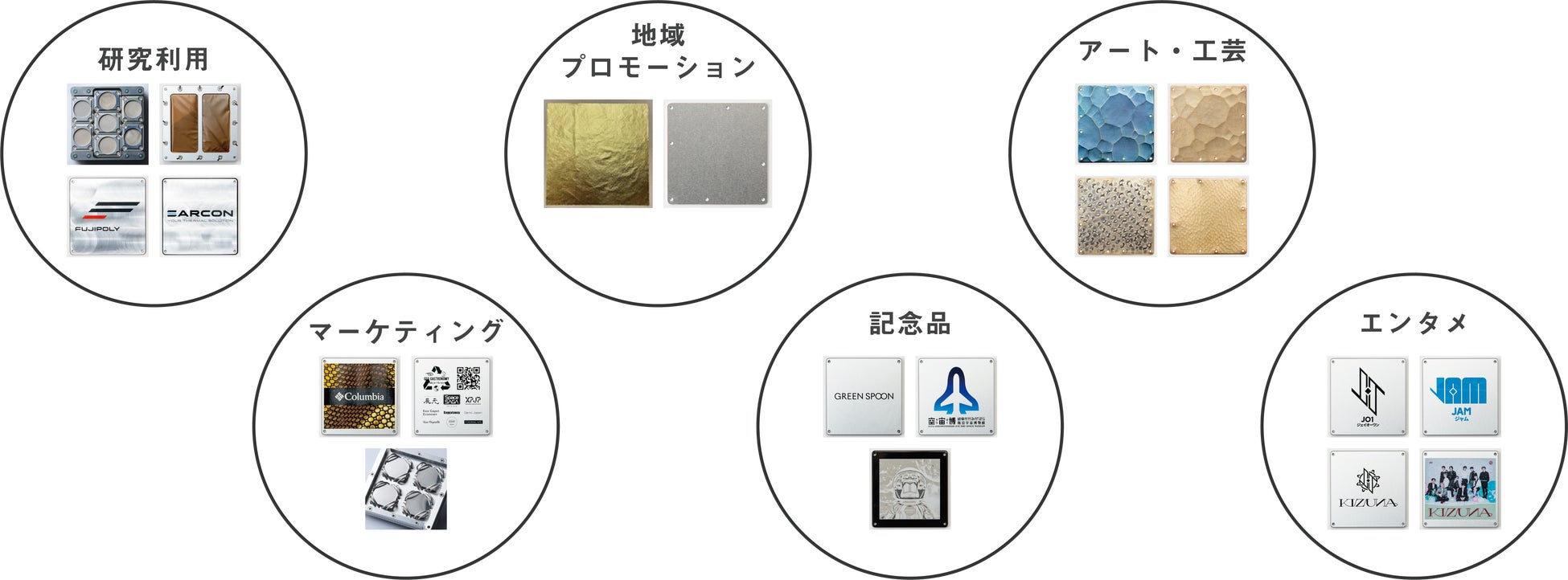 国内外の研究機関・教育機関・民間企業13組の対象品(研究開発素材、企業ロゴ、プロモーションアイテムなど)を打ち上げました。
