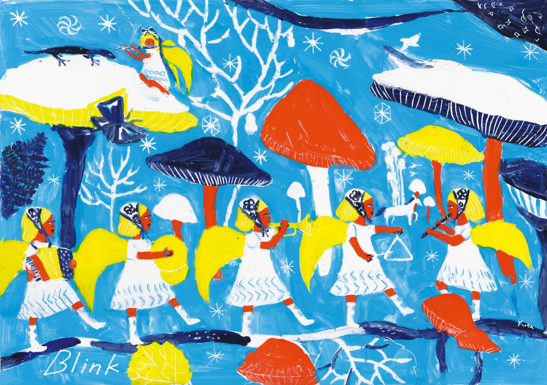 このタイトル「Blink(ブリンク)はまばたきを意味します。まばたきのその一瞬でも世の中は少しずつ変わっていきます。その前とその後は同じようで、全然違う。その瞬間を切り取って形にできたらと思って、いつも描いています」と、小川かなこは語っています。イラストレーター・絵本作家として活躍中の小川氏の神戸初の個展。ガラス絵の技法を取り入れた色彩豊かな作品たちです。お子さんもご一緒にぜひご覧いただきたい個展です。