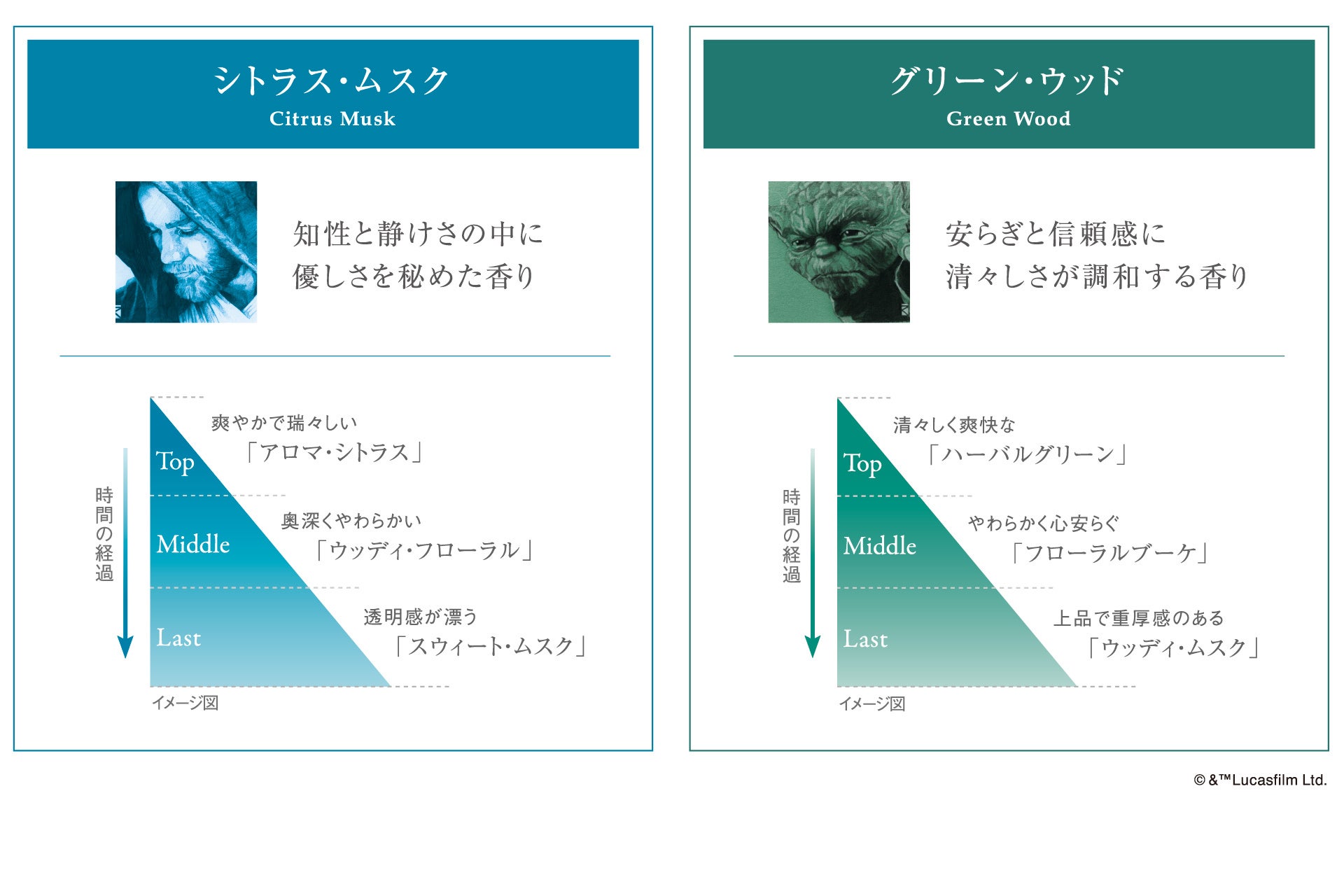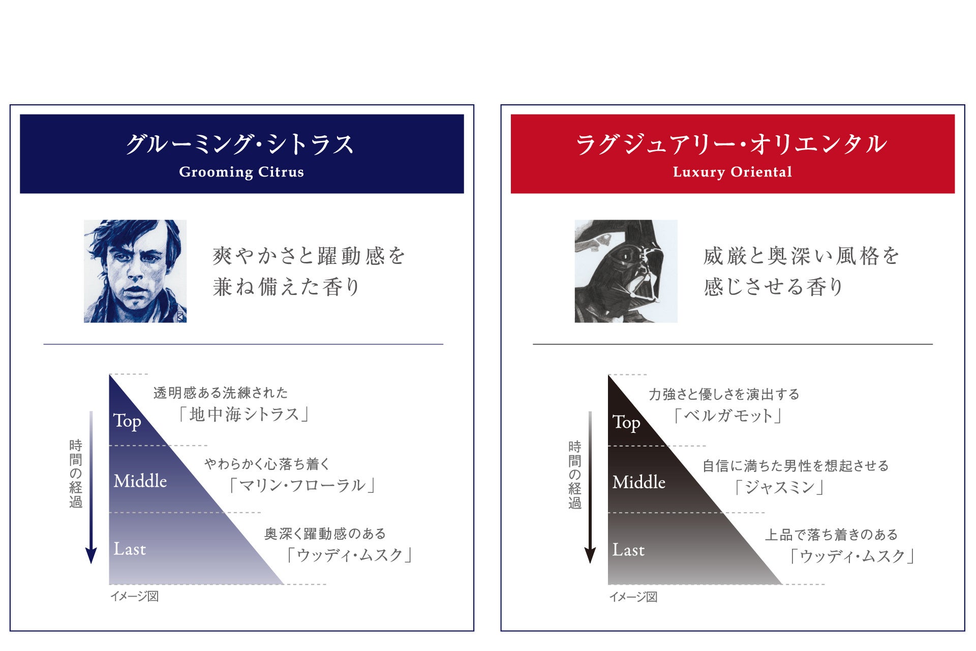 『スター・ウォーズ』には、自らを高め、自分の道を切り開いていくキャラクターが多く登場しますが、プラウドメンの“自分の道は自分で決める”というブランドメッセージが共鳴し、今回の限定パッケージの企画につながりました。ロングセラーの「スーツリフレッシャー」と「グルーミングバーム」が、それぞれ定番の4種の香りと5つの『スター・ウォーズ』デザインでラインナップします。