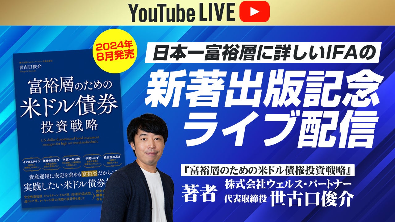 独立系ファイナンシャルアドバイザー(IFA)として富裕層向けに資産運用のコンサルティングを行う株式会社ウェルス・パートナー(本社:東京都港区、代表取締役:世古口俊介、以下:ウェルス・パートナー)は、2024年8月9日に『富裕層のための米ドル債券投資戦略』(世古口俊介 著)を総合法令出版株式会社より発売します。