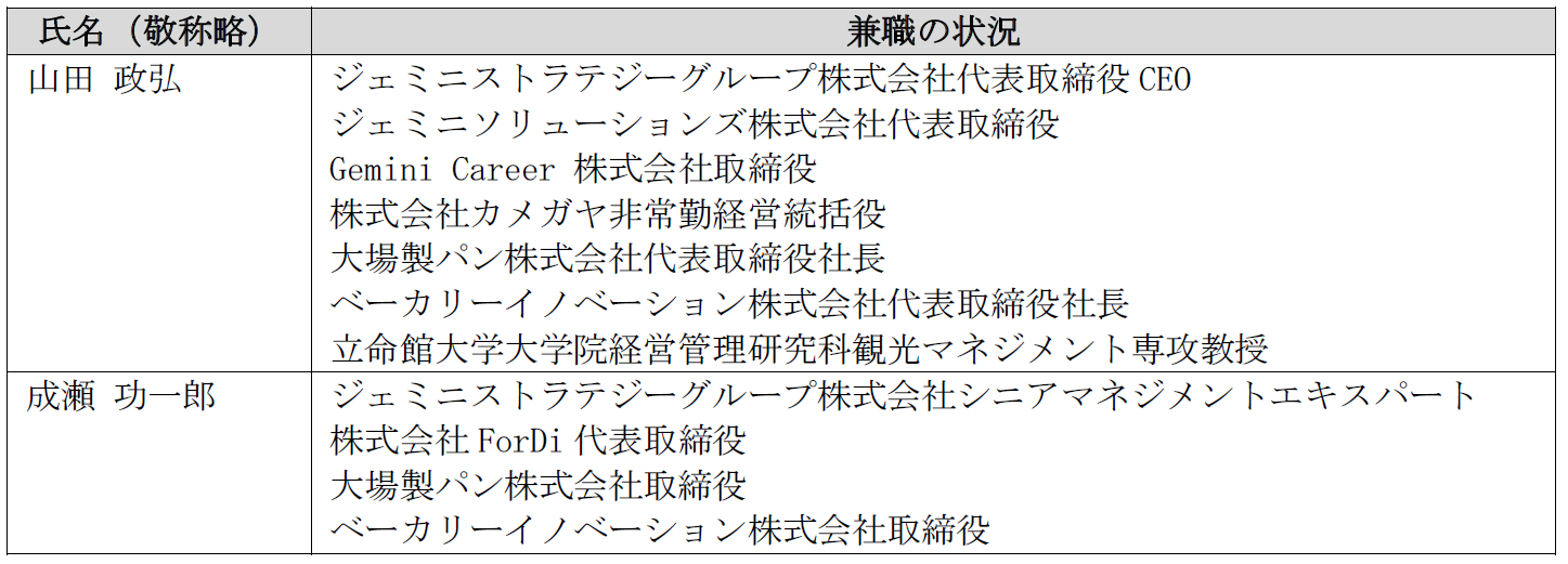 ダイドーが代表取締役候補として提案する山田政弘氏及び成瀬功一郎氏には、以下の兼職があります。