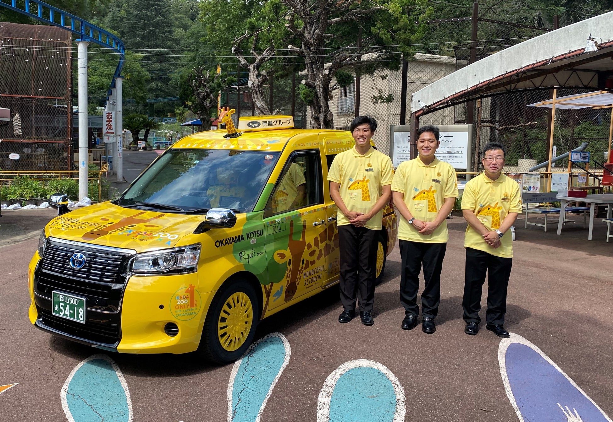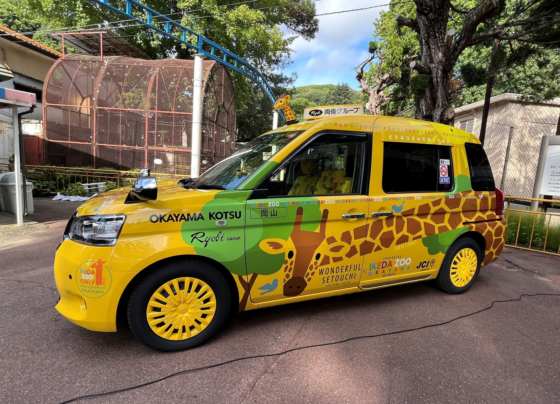 経営難が続く動物園を応援 黄色いタクシーに黄色いキリンをデザイン「サンタロウタクシー」誕生【両備グループ】