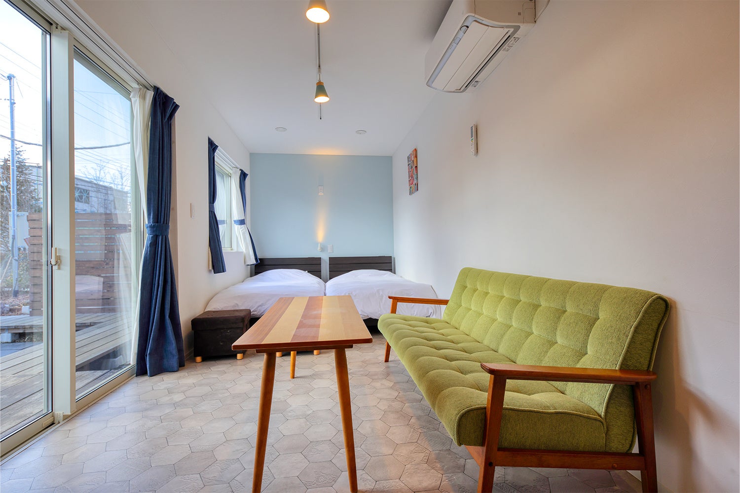 ※センターテーブルのソファベッドは全長160cm弱なのでお子様もしくは女性向けです。
