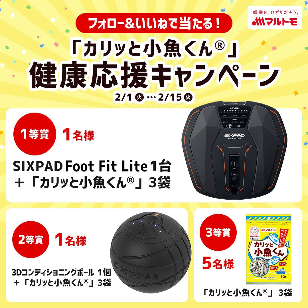 1等賞:「SIXPAD Foot Fit Lite」1台+マルトモ「カリッと小魚くんⓇ30g」3袋セット・・・1名様