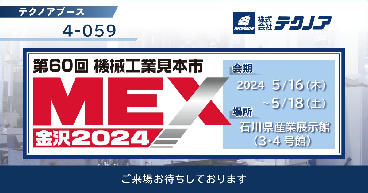 株式会社テクノア(本社:岐阜県岐阜市、代表取締役:山﨑 耕治、以下:テクノア)は、5/16~18 に 石川県産業展示館 で開催される「 MEX金沢2024(第60回機械工業見本市金沢) 」に出展いたします。