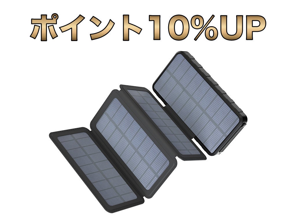 ソーラーパネル4面搭載モバイルバッテリー 10000mAh