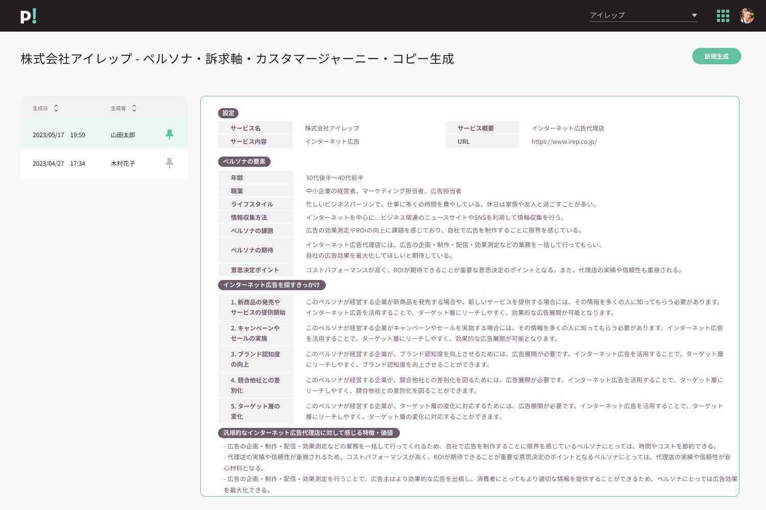 ・ ChatGPTクリエイティブ制作アシスト機能 - ペルソナ・訴求軸・キャッチコピー生成