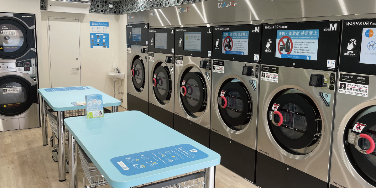 また、コインランドリー専用IoTシステム「smart laundry(スマートランドリー)」を導入しています。