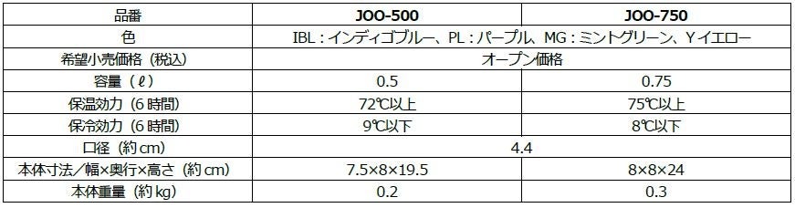 『サーモス 真空断熱ケータイマグ(JOO-500/750)』 仕様一覧
