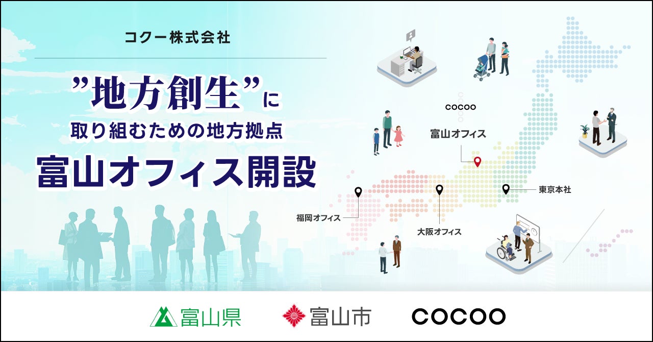 中部初となるコクーの拠点を富山市に立ち上げることとなりました。立ち上げに際し、富山県様、富山市様のご支援に心より感謝申し上げます。