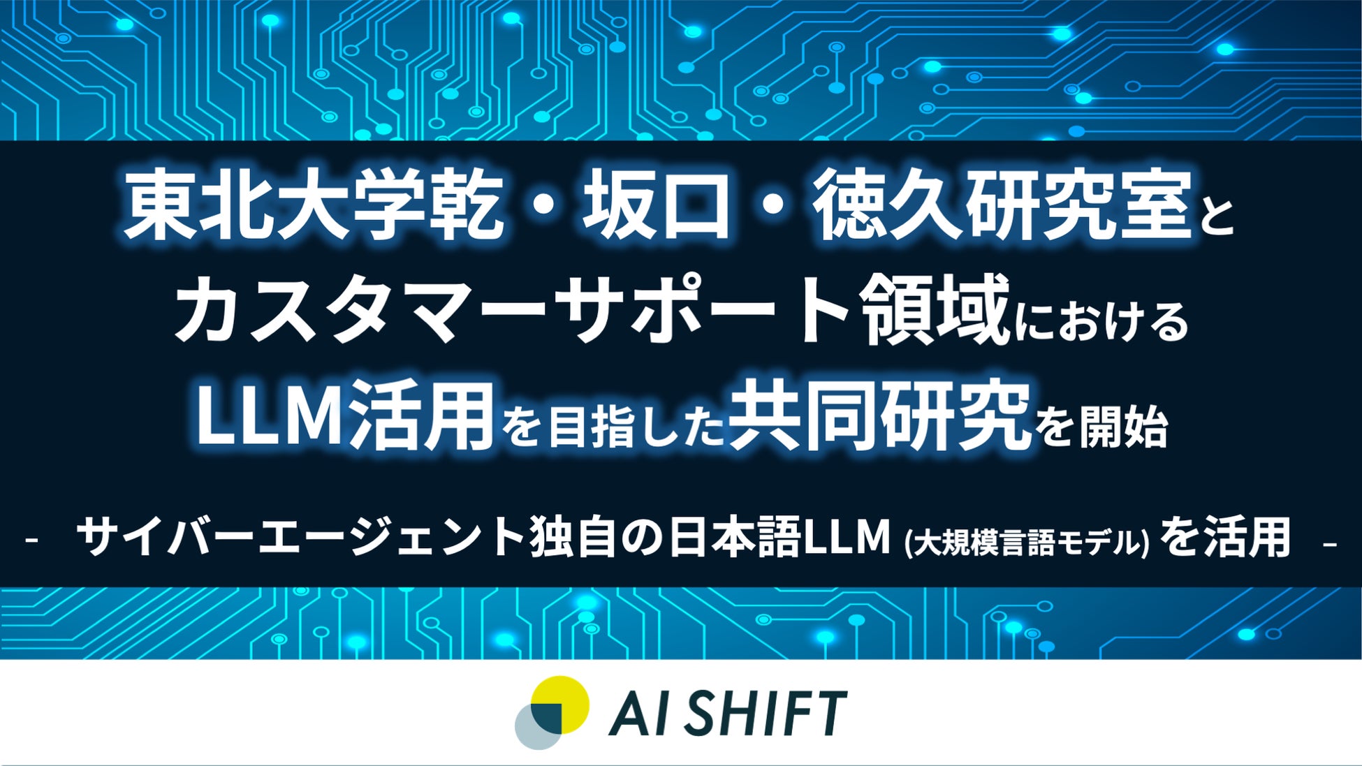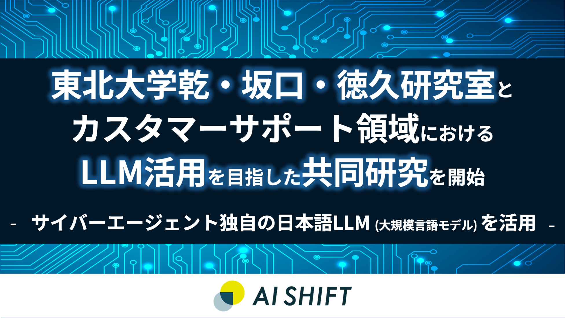AI Shift、東北大学の乾・坂口・徳久研究室とカスタマーサポート領域におけるLLM活用を目指した共同研究を開始