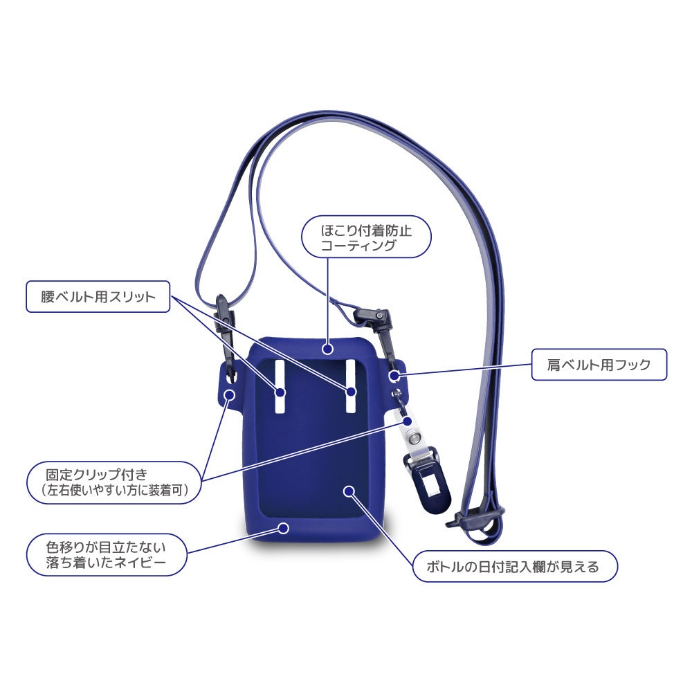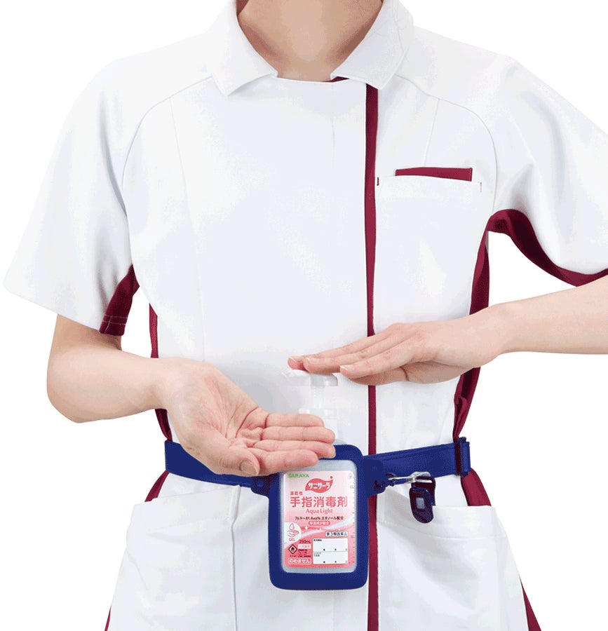 シリコンポシェットは、弊社製の手指消毒剤250mL規格を携帯できる、シリコンゴム製ポシェットです。手指消毒剤携帯用ツールは、日々の業務で頻回な手指消毒が求められる医療・福祉従事者にとって、必要なタイミングで手指消毒ができ、感染対策意識や遵守率向上に貢献する必須アイテムです。この度、新発売となるシリコンポシェットは、中容量規格では業界初のシリコンゴム製であり、装着感だけでなく、汚れが除去しやすく衛生的に保つことを重視して開発しました。