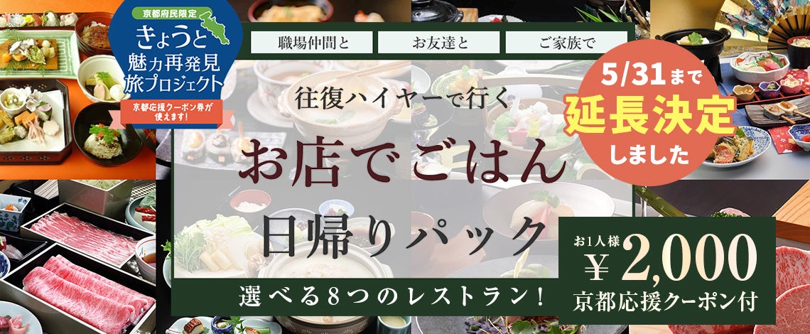 京都府が感染状況レベル3またはまん延防止等重点措置の適用地域になったときは、キャンペーンの利用を停止します。詳しくはこちら