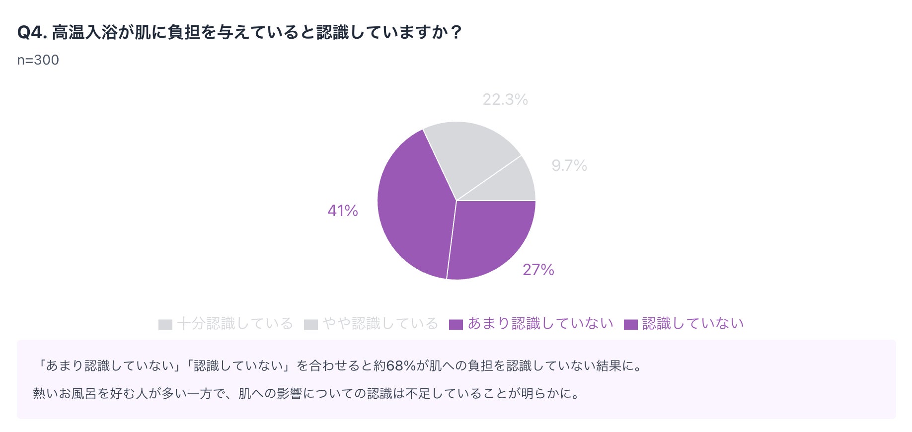 高温入浴が肌に負担を与えていることを認識しているか調査しました。