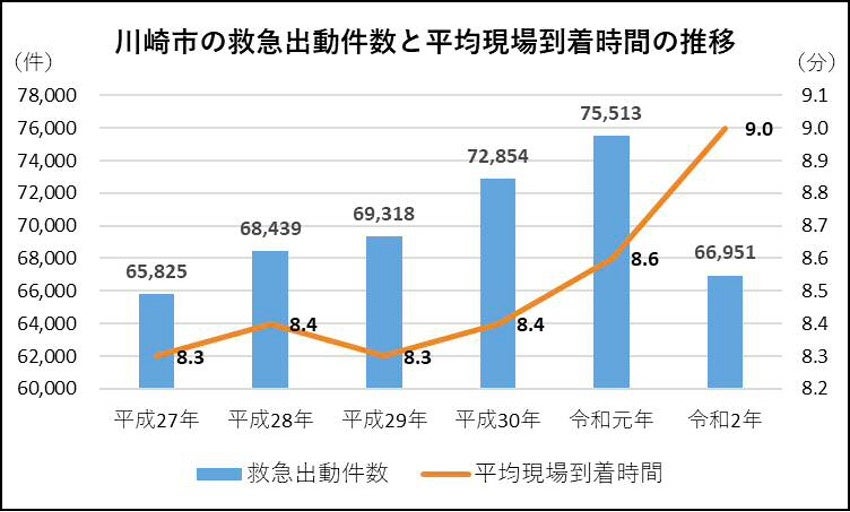 川崎市と株式会社Smart119は、本年6月から9月末にかけて救急隊の現場到着時間短縮を目指した実証実験を実施。過去の救急出動に関するビッグデータを解析することによりAIを開発します。そのAIを活用した救急需要予測を行い、その精度を机上で検証するほか、現在の川崎市における救急隊の配置場所等の評価を行います。