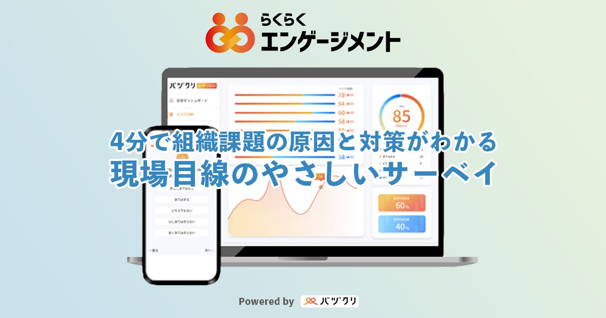 回答4分、結果すぐ可視化。人事の負担を軽減し、サーベイから打ち手実行までをスムーズにつなぐ現場主導型エンゲージメント調査を提供。