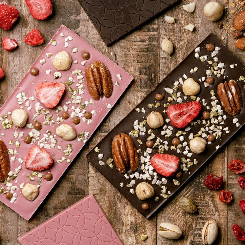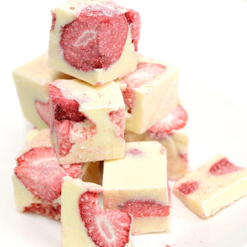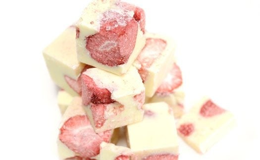 キューブ型チョコレートにすることで、不揃いいちごがかわいい見た目に