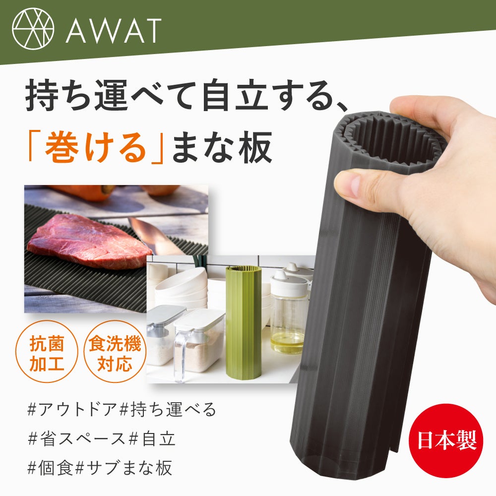 株式会社アルファックス(本社:大阪府大阪市、代表取締役:由良 充啓)は、ライフスタイルブランド「AWAT」より、コンパクトに持ち運べてアウトドアにも最適な「巻ける」まな板『ロールカッティングボード』を4月10日(月)に発売致します。