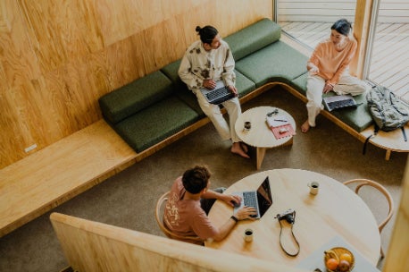 閉鎖的なオフィスとは異なり、自然に囲まれた環境で心身共にリフレッシュしながら、チームの自然なコミュニケーションを引き出します。