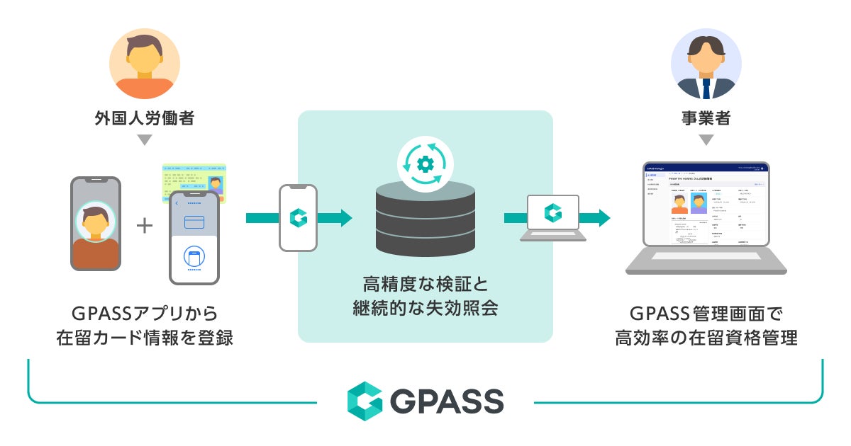 「GPASS」は、外国人の方々が自分自身に関するあらゆる情報をスマートフォンで一元管理できるようにする外国人向けデジタルIDウォレットです。GPASSを利用して自らの情報を正確に整理、提示できるようにすることで社会活動の選択肢を狭めることなく、主体的かつスムーズに行動できる共生社会を作ることを目的に開発されました。 2024年8月より一般提供を開始し、既に登録数は35,000名を超えています。外国人本人の明確な意思の元、在留カード情報、所属組織、就学就労実績、資格、スキル、日本滞在歴やそれらに伴う与信などの情報を詳細かつ高精度に格納できるデータベースと、それを思いのままに提示できる仕組みを提供することで、外国人労働者と就労先企業との間、外国人消費者とサービス提供事業者との間のミスマッチを解消していきます。