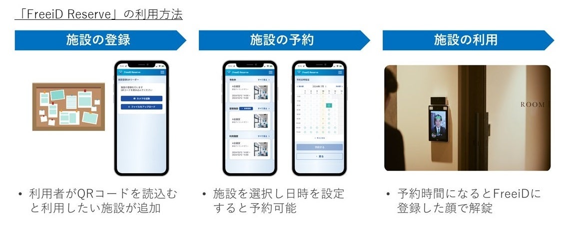 DXYZが開発提供している顔認証IDプラットフォーム「FreeiD」による施設予約サービス「FreeiD Reserve」は、会議室などの施設予約ができる非常にシンプルで使いやすいサービス。各施設の登録・予約に加えて、利用実績に応じた決済も可能です。