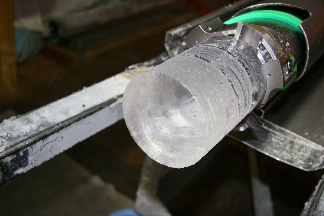深層アイスコアを間近で観察