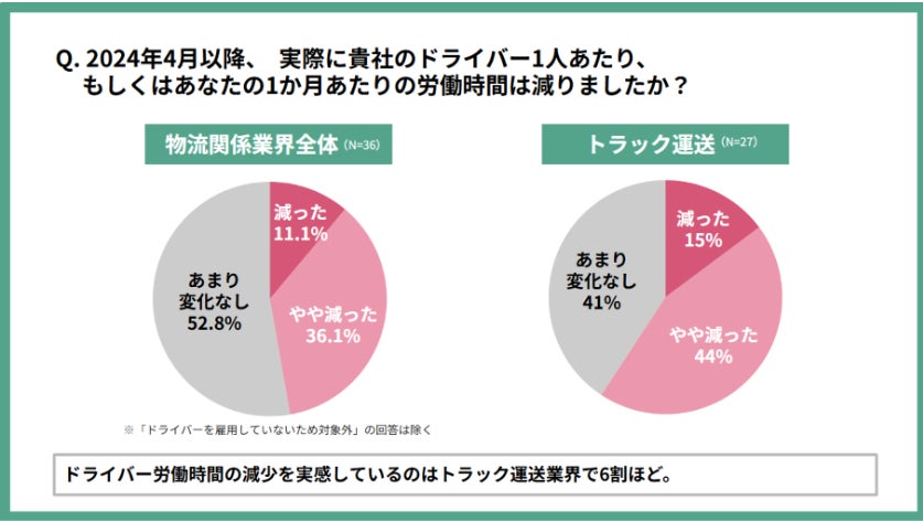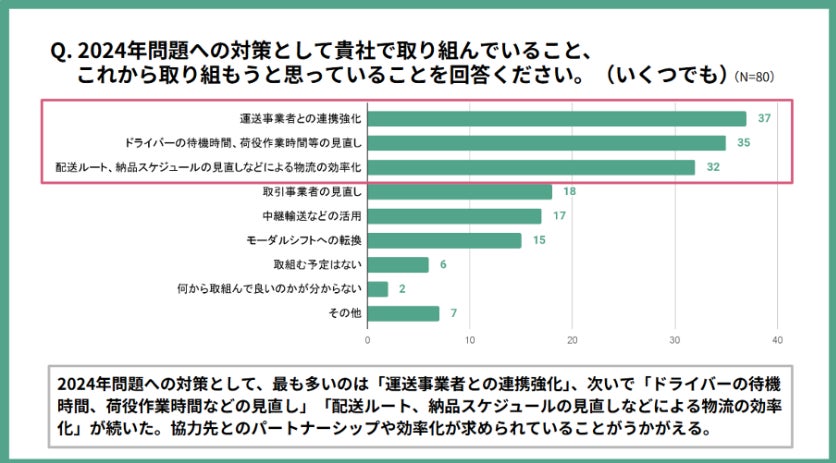 物流2024年問題「約6割がドライバーの労働時間減少を実感」「運送業者との連携強化」「荷役時間や配送ルートの見直し」から着手