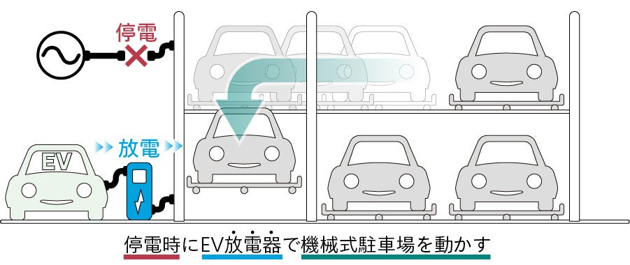 EV放電で機械式立駐を駆動!V2Xシステム災害利用を東京電力グループと新電元が実証、三相電源による施設の機能維持へ一歩前進