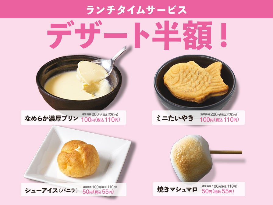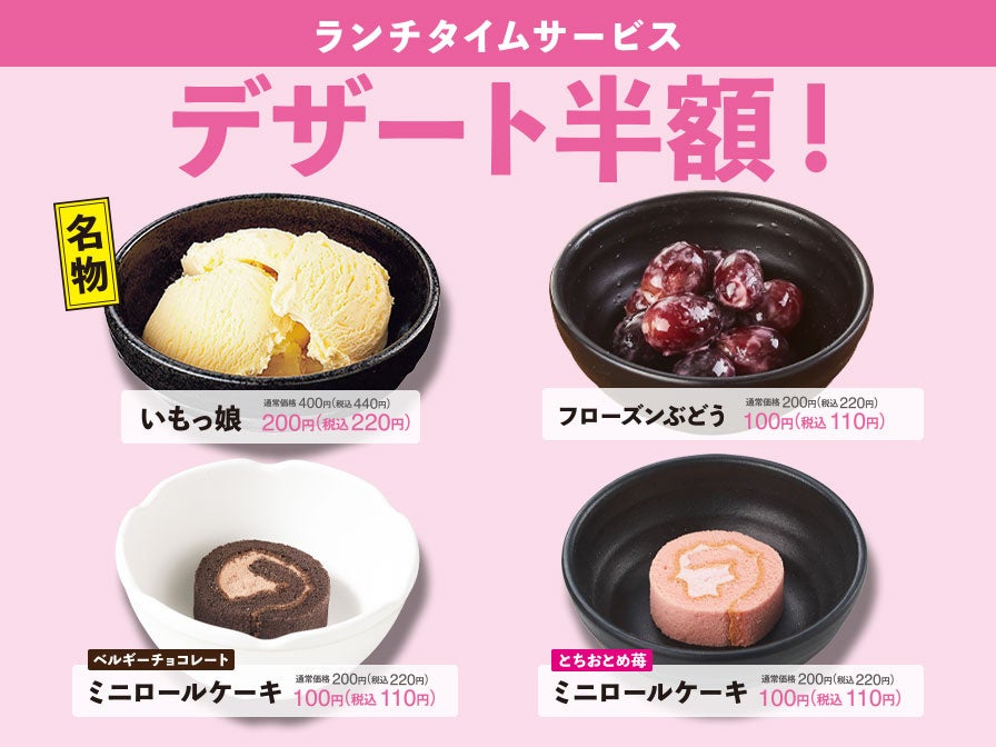 じゅうじゅうカルビのランチタイムではデザートを半額で販売いたします。