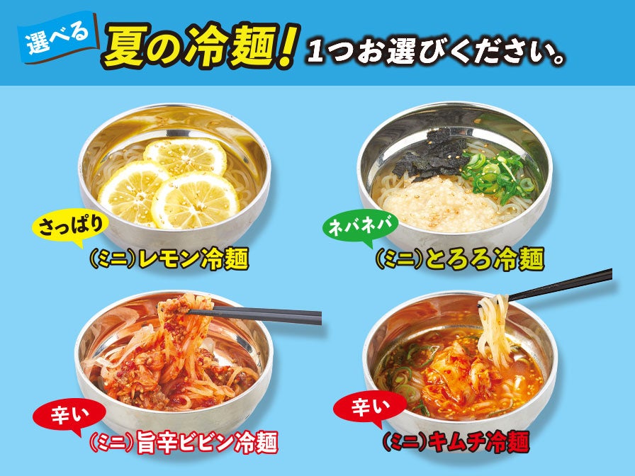 期間限定で夏にピッタリの冷麺がランチメニューに登場。また、自分で焼いて巻いて美味しいサムギョプサルも新登場します。