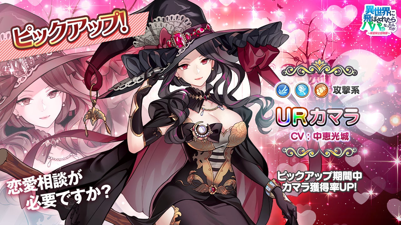 『異世界のパパ』スキル強化に必要なスイーツを食べ尽くそう「ハロウィンパーティー」開催!ハロウィン魔女「カマラ」登場や新機能セレクト召喚/待望のパーティーレイドURスロット増設も実施!