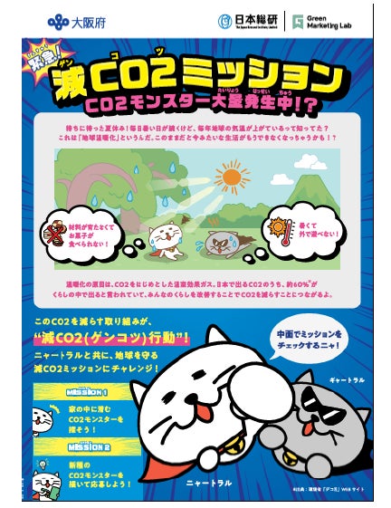株式会社日本総合研究所(本社:東京都品川区、代表取締役:谷崎勝教、以下「日本総研」)は、2024年3月27日付けで締結した「『みんなで減CO2(ゲンコツ)プロジェクト』による府民の脱炭素行動変容に関する連携協定」(以下「連携協定」)(注1)に基づき、大阪府(知事:吉村洋文)と共催、ステッドラー日本株式会社(本社:東京都千代田区、代表取締役社長:遠井孝夫、以下「ステッドラー」)の協力を得て、大阪府内小学校等1,029校の4~6年生(支援学校小学部を含む)合わせて約21万人を対象に、脱炭素行動を促す啓発コンテスト「緊急!減CO2(ゲンコツ)ミッション」(以下「本コンテスト」)を2024年7月19日(金)から2024年8月25日(日)まで実施します。