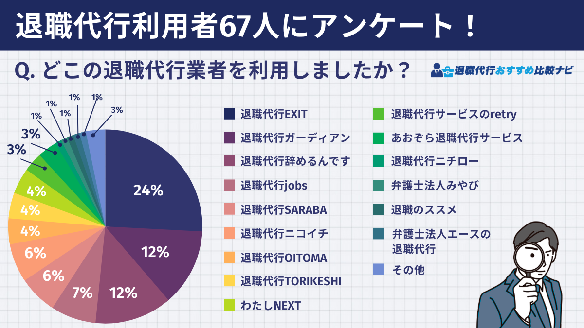 最も利用者数の多かった退職代行サービスは「退職代行EXIT」という結果に