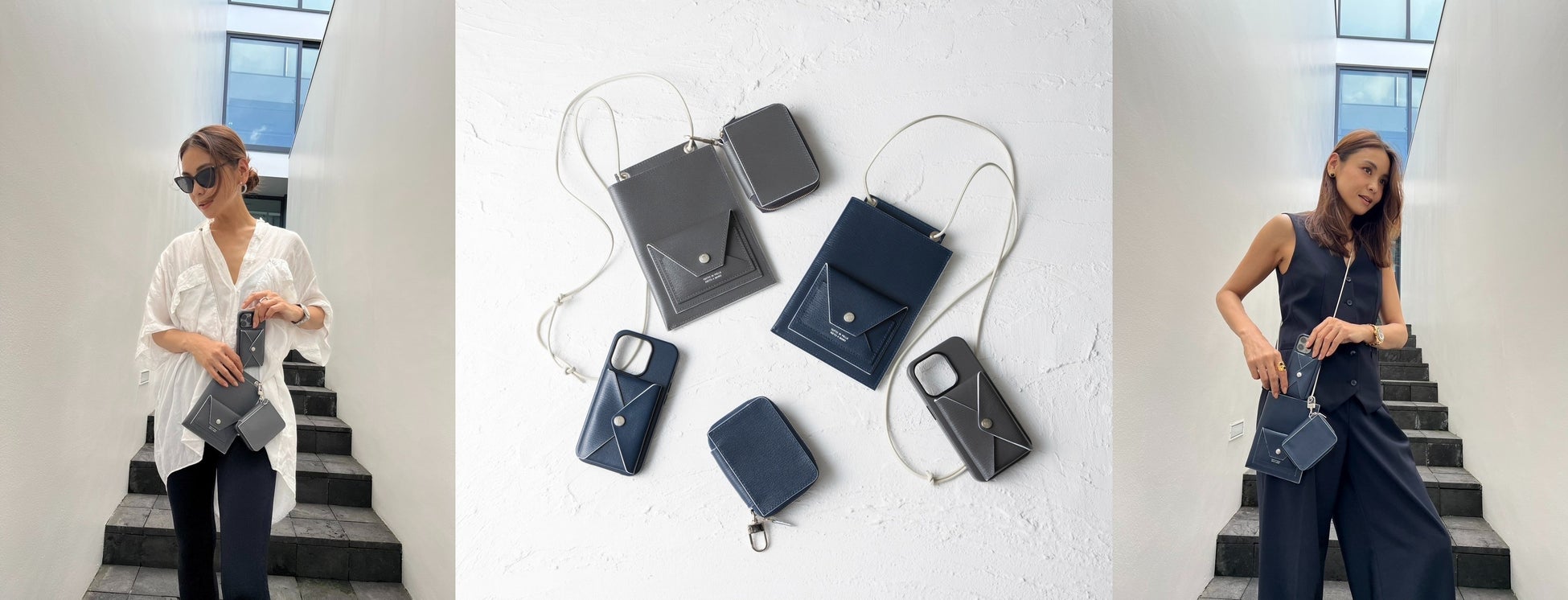 ウォレット内蔵ショルダーマルチポシェット(ミッドナイト、アスファルトの2色展開)各¥38,500(税込)