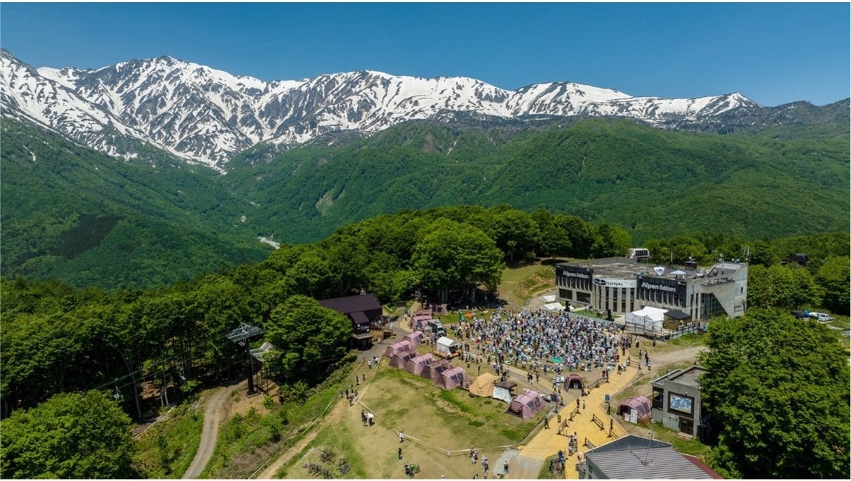 第4回目となった2024年は、北アルプスを一望して誰でも参加可能な「絶景手ぶらリラックスヨガ」、「絶景フィットネス」、注目のアーティストから今後の活躍が期待されるアーティストまで多数出演する「オープニングアクト」や地元のエネルギッシュなパフォーマンス「小谷太鼓」「チアリーディング」、特別延長営業で夜まで楽しめる涼しい山の空気に包まれる「イルミネーションナイト」など、絶景を堪能できるコンテンツをパワーアップさせ、9日間にわたって開催しました。フィナーレとなる5月25日・26日の2日間は、キマグレンの「ISEKI」がプロデュースした音楽フェスを催行。最終日のチケットは完売になり、2日間で約3,000人が参加いたしました。