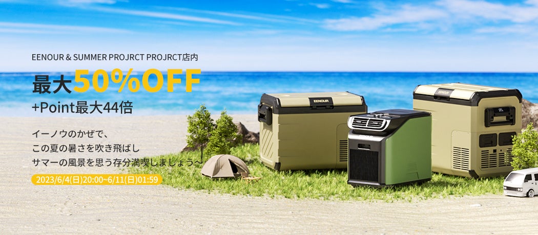 EENOUR楽天市場店では皆様の生活をより便利、快適になるため、ポータブル冷蔵庫やスポットクーラーなど、様々な防暑対策商品を開発しており、好評を得ております。楽天スーパーセールを契機に全店最大50%OFF+ポイント最大44倍のお買い得な企画を実施しております。