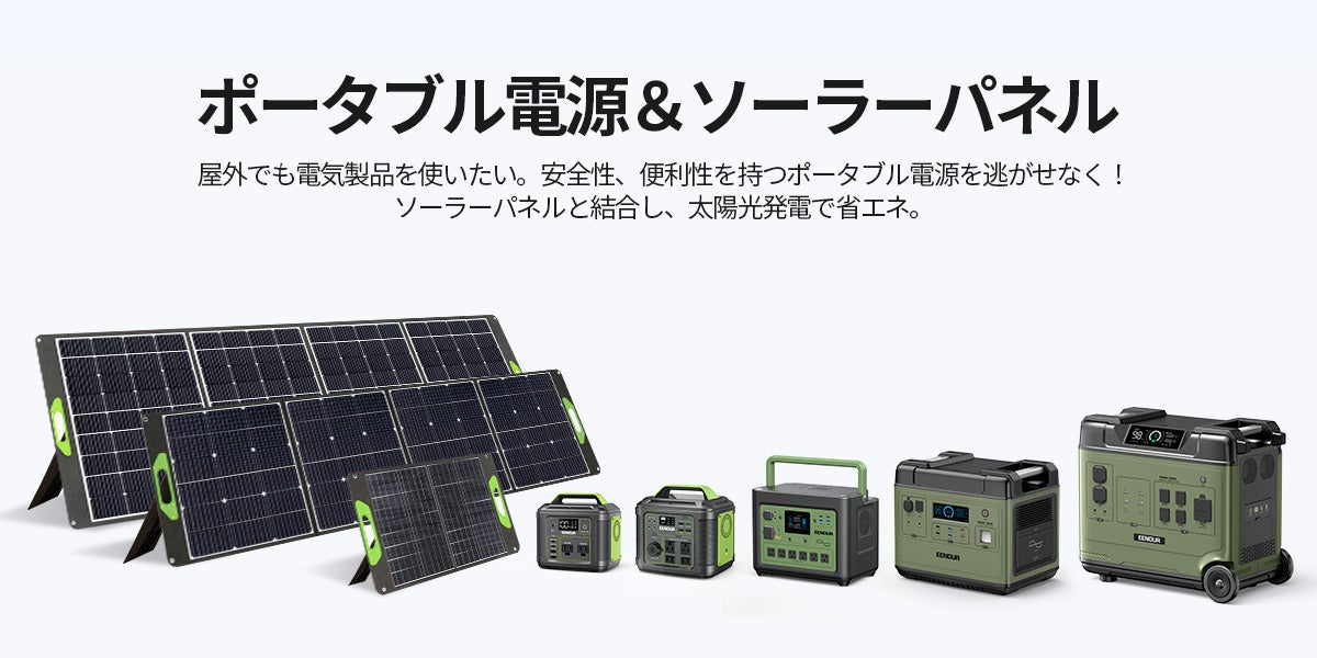 EENOUR(イーノウ)は、ポータブル電源と発電機を中心に、携帯性の高い冷温庫、ポータブル冷蔵庫、スポットクーラーなど電源を使った電気製品の開発に集中して、オフグリッド環境での充電やキャンプを快適にする、革新的なアウトドアギア電源を世に送り出しているブランドです。