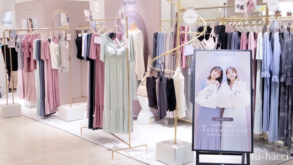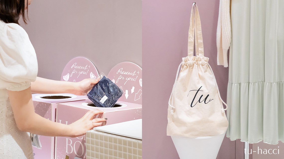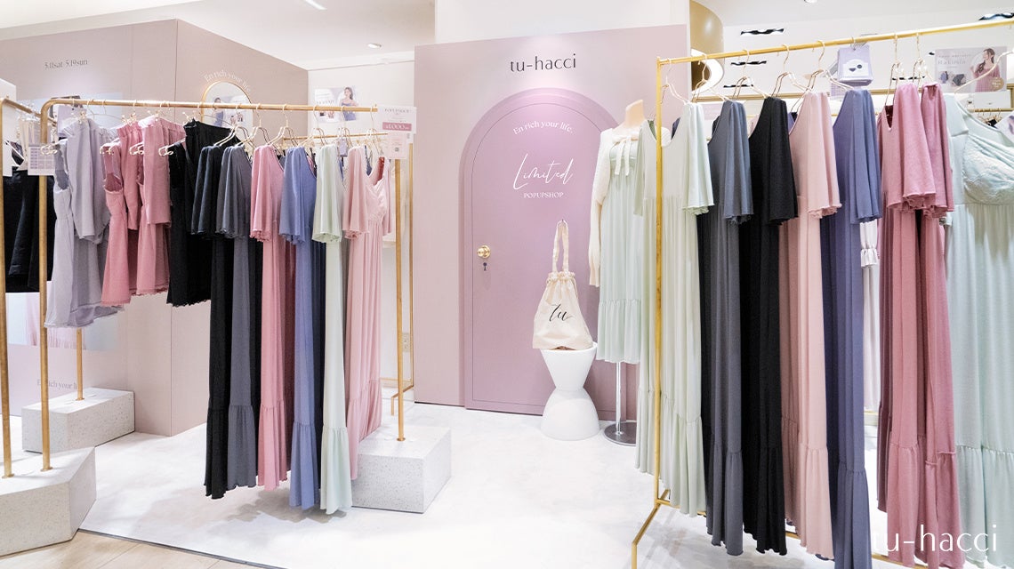 東京初のPOPUP SHOPでは、tu-hacciをご存じの方や、まだtu-hacciを知らない方など、より多くの方に商品の良さを体感していただくべく、tu-hacciの人気商品のナイトブラ一体型ルームウェア《Rakusia sleep》と楽盛りブラトップ《BRAIRAZU》を展開。
