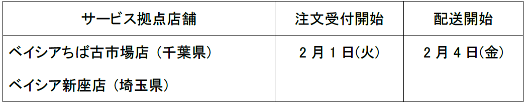 ※ちば古市場店、新座店のサービスエリアは2022年2月1日(火)より注文受付開始となります。