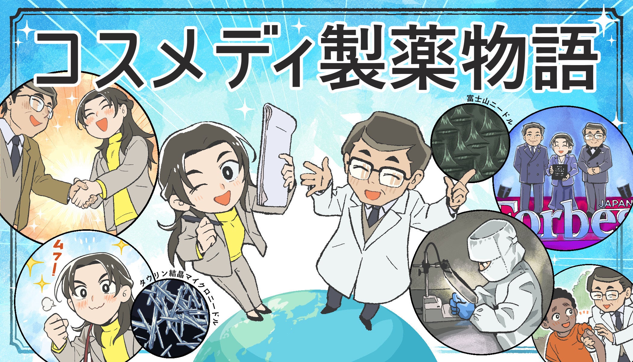 「コスメディ製薬物語」は神山と権をメインキャラクターとして展開、私たちの成長を支えていただいたステークホルダーの皆さまへの感謝を込めて、京都のベンチャー企業の創業から四半世紀のストーリーをマンガでお届けします。
